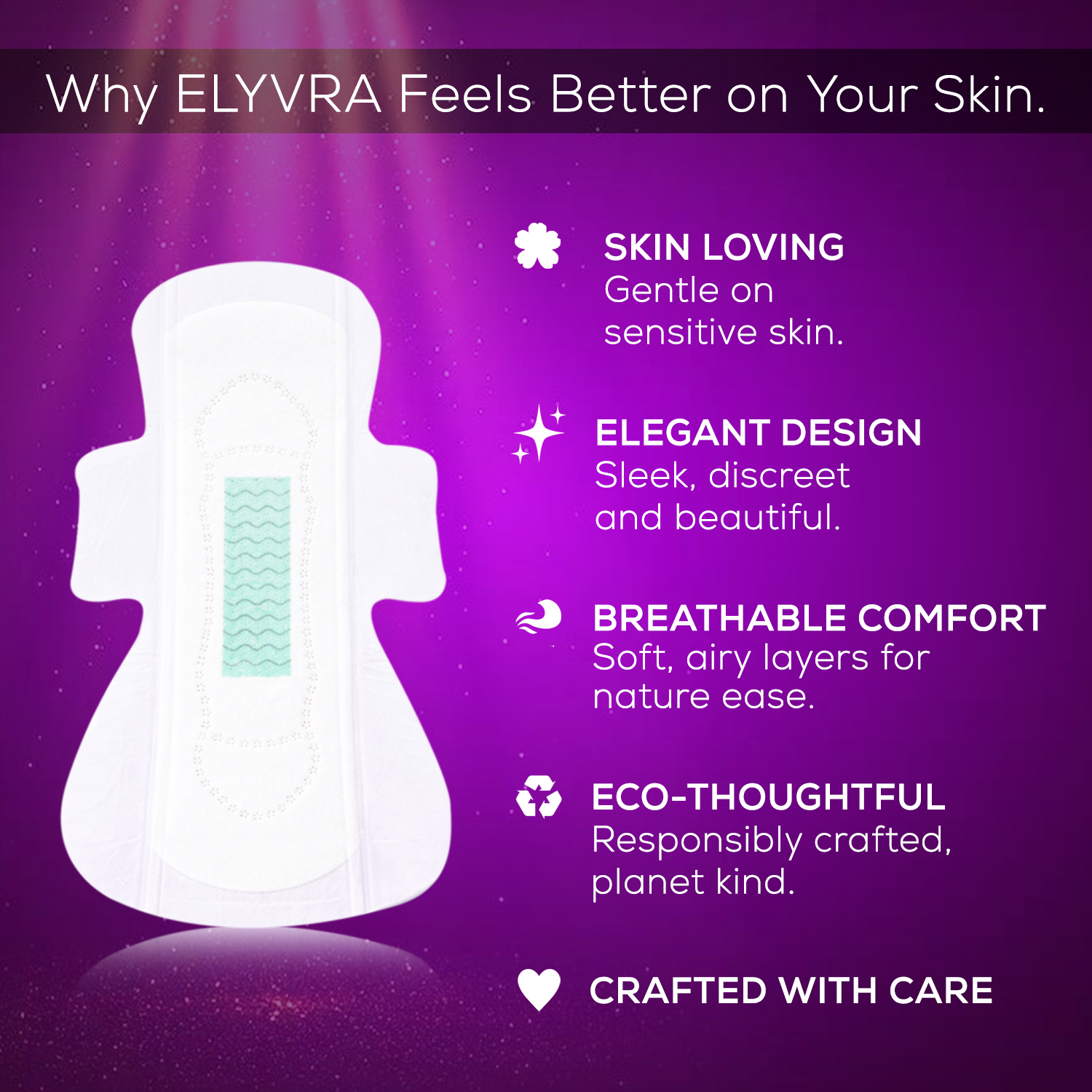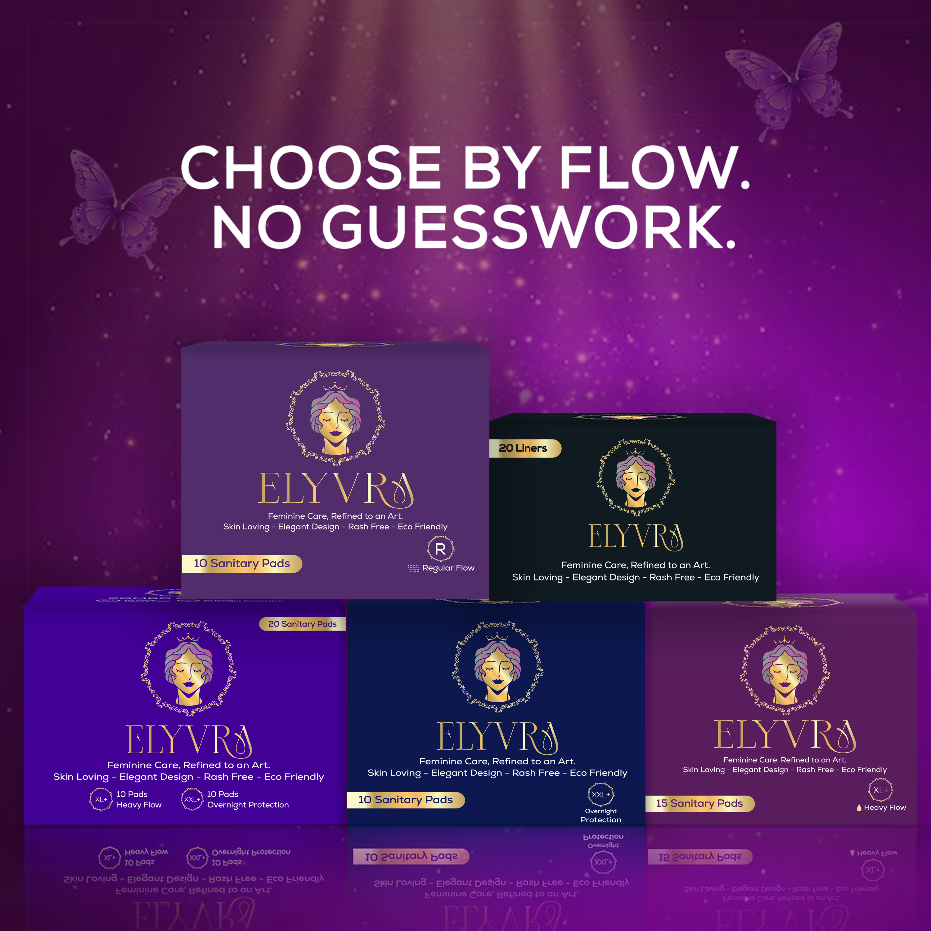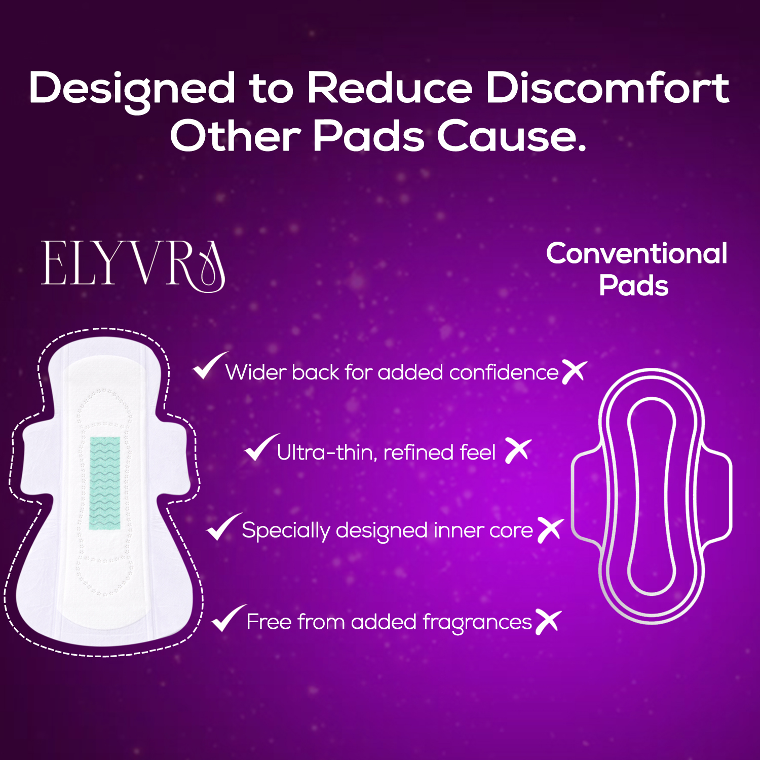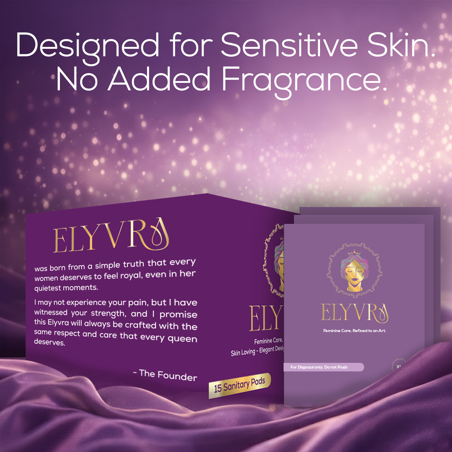 Elyvra Ultra-thin regular sanitary pads designed for light to medium flow — refined comfort, breathable softness, and everyday protection without bulk.