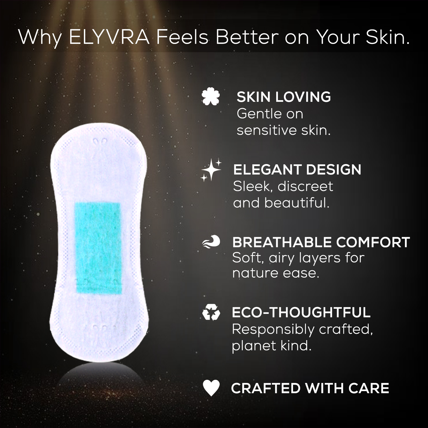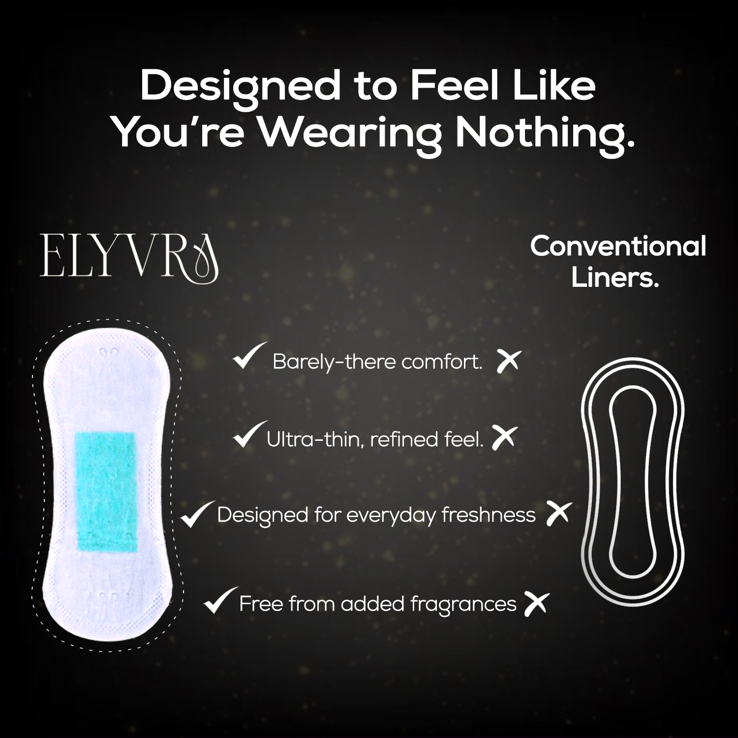 Elyvra Ultra-thin daily panty liners designed for everyday freshness, light discharge, and discreet protection — feather-soft, breathable, and made to move with you.